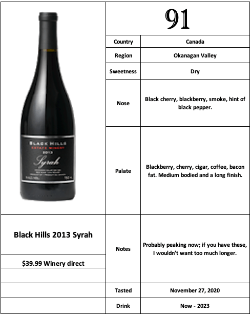 She then picked one more for me, and I got the region correct, and the vintage, but totally missed the grape. I was sure it was a BC Malbec. It seemed way too jammy to be what it really was.